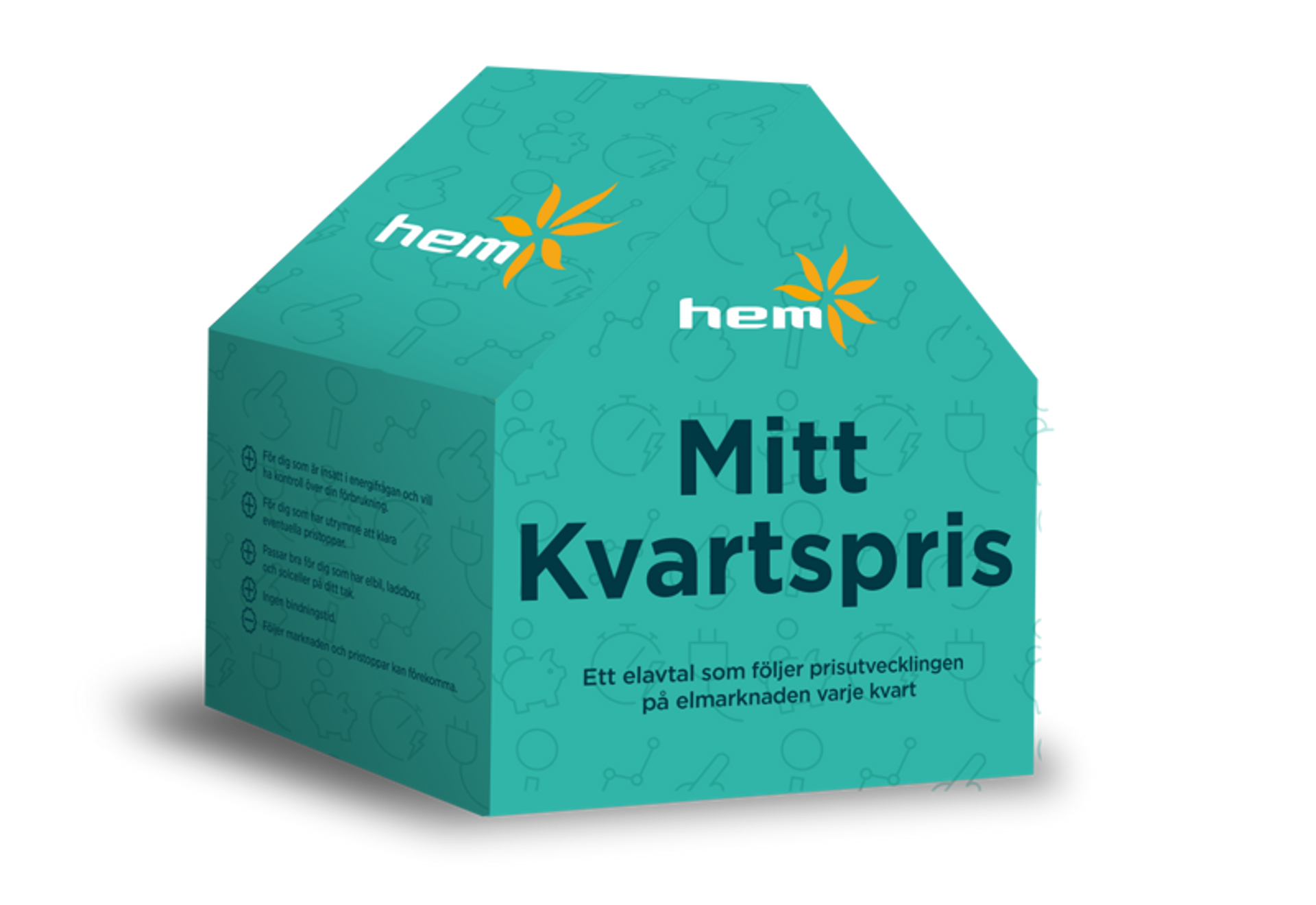 Med Mitt kvartspris köper du elen varje kvart. Vi har inget påslag på elen du köper, det enda du betalar är 59 kr/mån i fast kostnad.